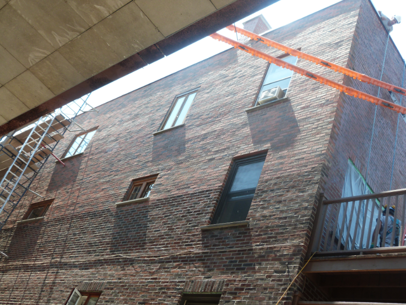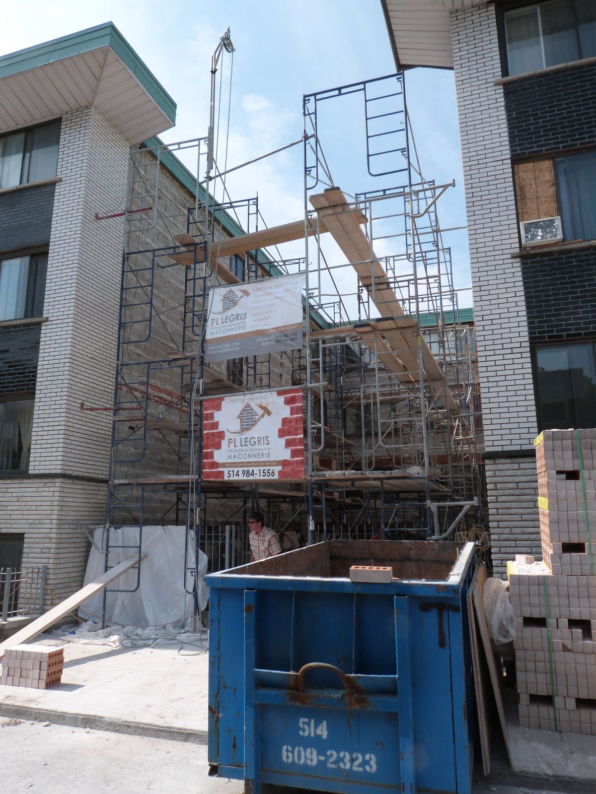 Entrepreneur maçon à Montréal PL Legris répare les gonflements de mur de briques (ventre de boeuf) qui provoque la chute des murs en brique.